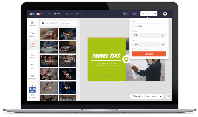 DesignCap是一款平面設計好幫手,可以套用內建範本快速生成各種類型的海報,也能自行修改內容。